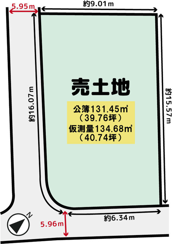 | 建物面積 | - | 土地面積 | 131.45m2(39.76坪)(仮測量面積134.68m2) |