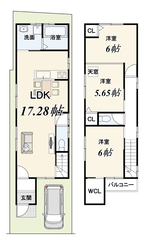 - ※完成予想図やCG合成画像は、門塀・植栽・庭・外観等、実際とは多少異なる場合があります。