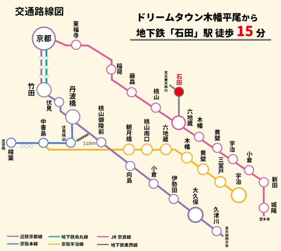 - 京都地下鉄東西線「石田」駅 徒歩15分JR奈良線「六地蔵」駅 徒歩18分京都地下鉄東西線「六地蔵」駅 徒歩18分