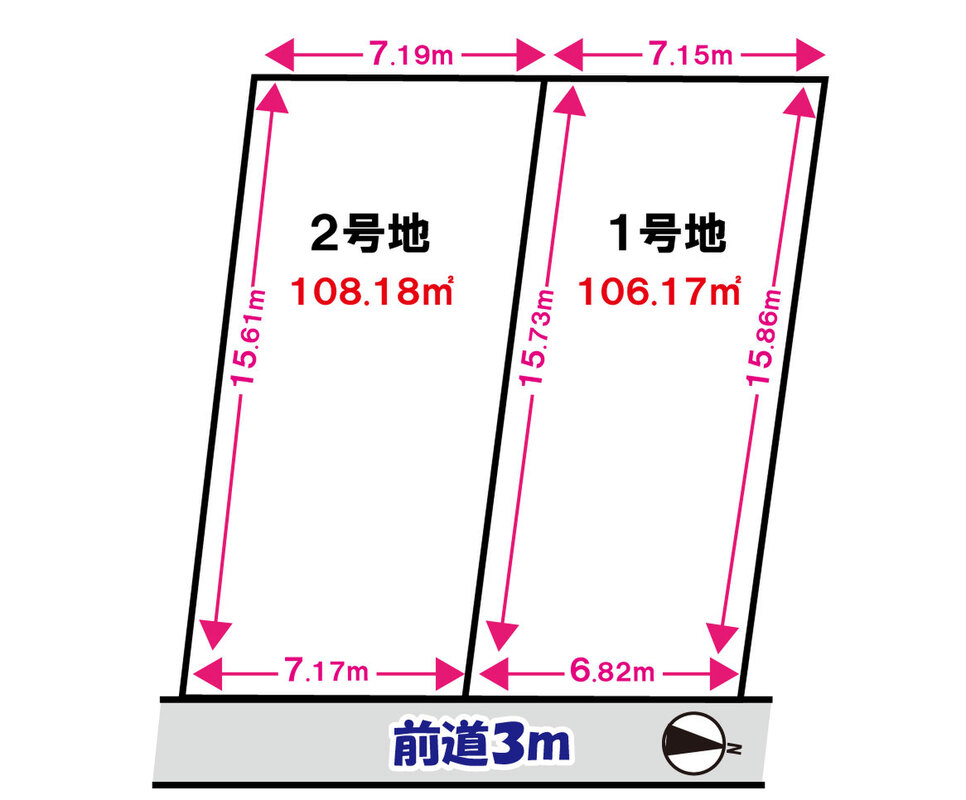 | 建物面積 | - | 土地面積 | 106.17m2(32.11坪)~108.18m2(32.72坪) |
