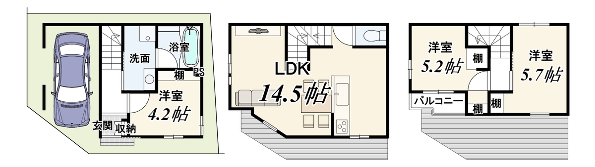 - ※完成予想図やCG合成画像は、門塀・植栽・庭・外観等、実際とは多少異なる場合があります。