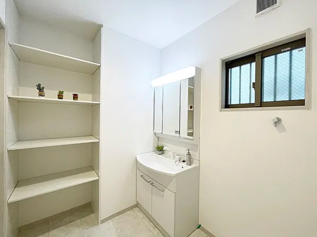 ■使い勝手の良い鏡裏収納付3面鏡型の独立洗面化粧台。ご家族そろ...