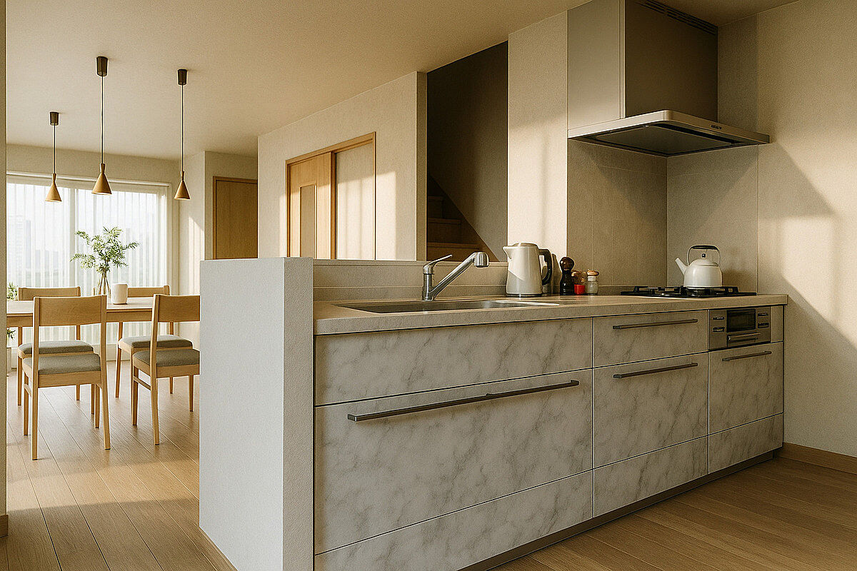 リビングルームにいるご家族の様子を見ながら調理が可能。