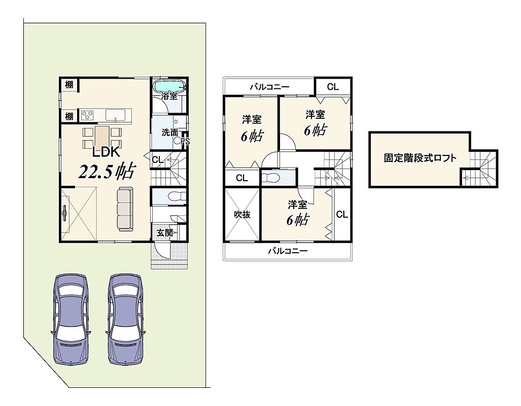 - ※完成予想図やCG合成画像は、門塀・植栽・庭・外観等、実際とは多少異なる場合があります。