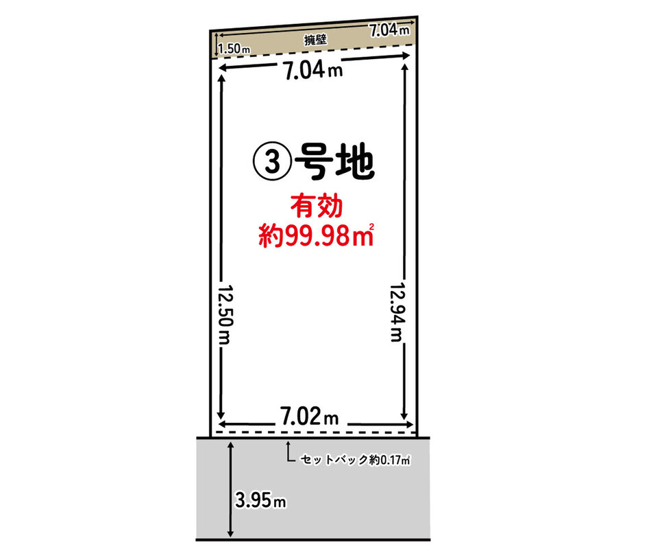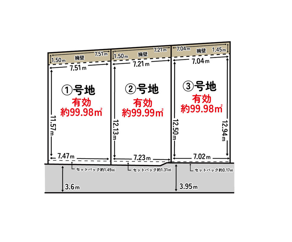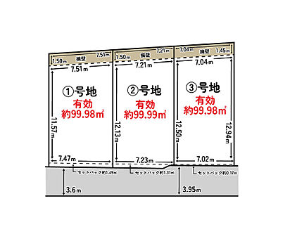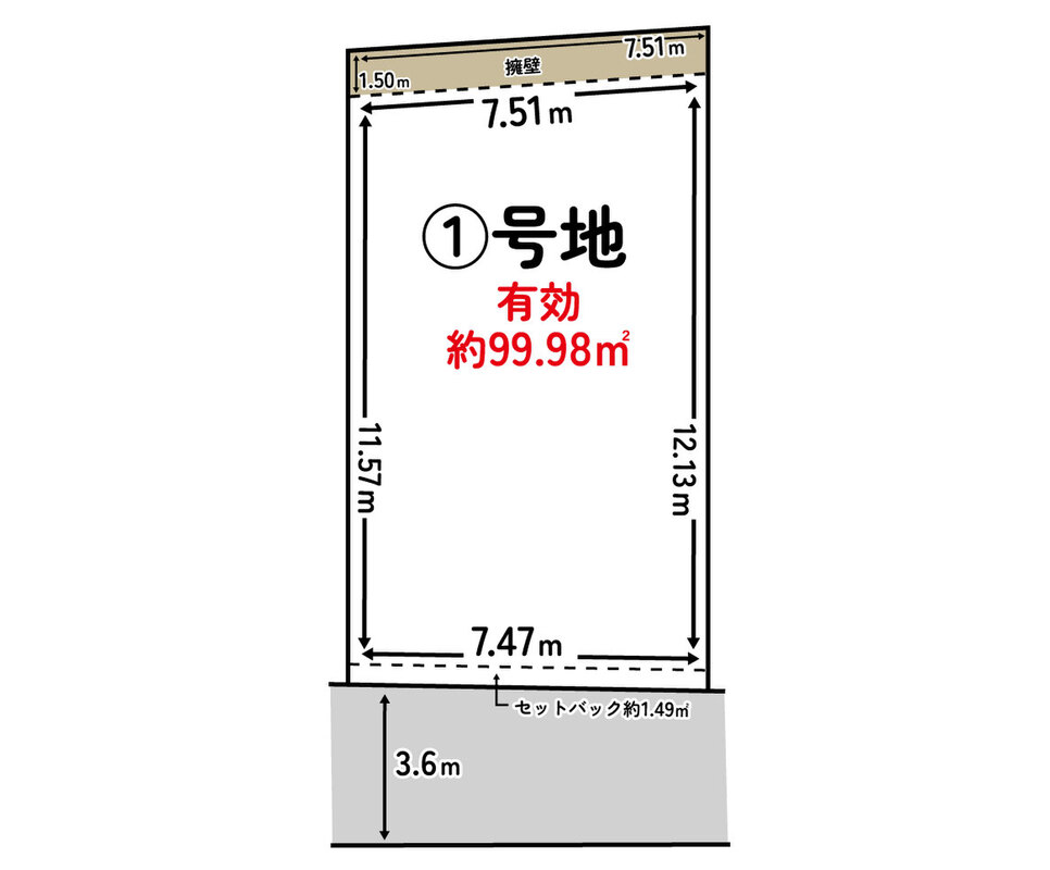 | 建物面積 | - | 土地面積 | 有効土地99.98m2~99.99m2(30.24坪) |