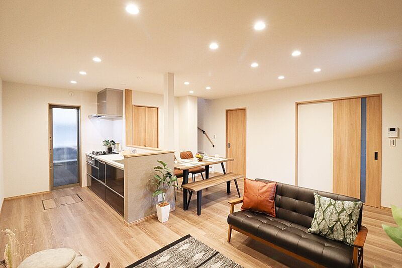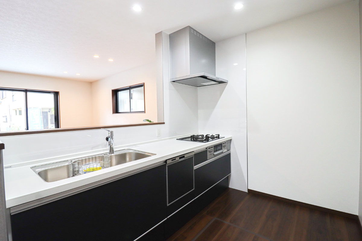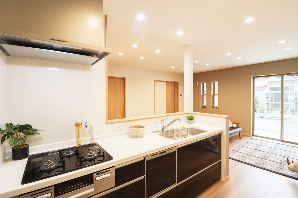 ■対面キッチンは料理をしながらリビングを見渡せ、家族との会話も...