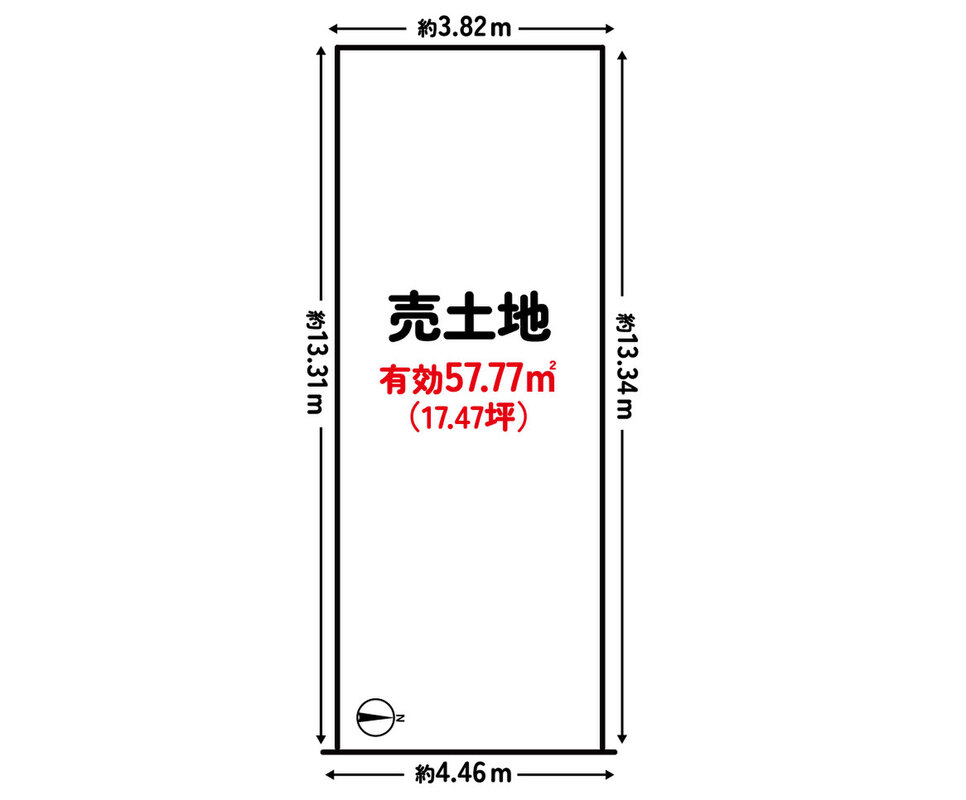 | 建物面積 | - | 土地面積 | 有効57.77m2(17.47坪) |