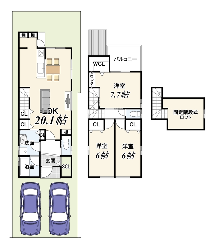 - ※完成予想図やCG合成画像は、門塀・植栽・庭・外観等、実際とは多少異なる場合があります。