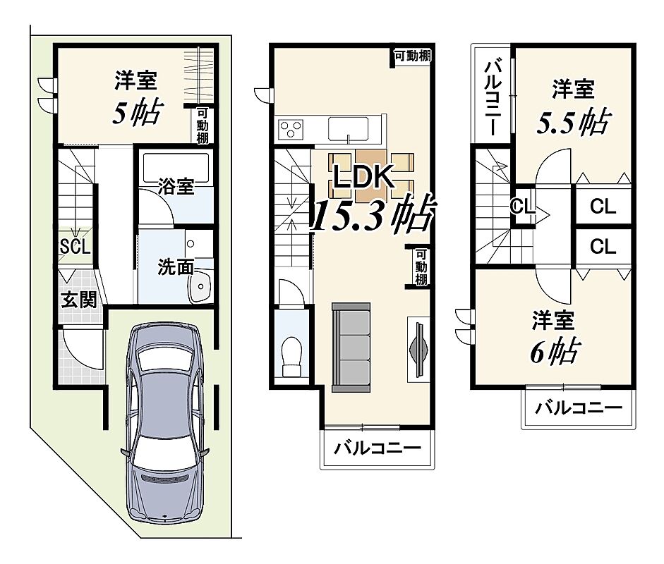 - ※完成予想図やCG合成画像は、門塀・植栽・庭・外観等、実際とは多少異なる場合があります。