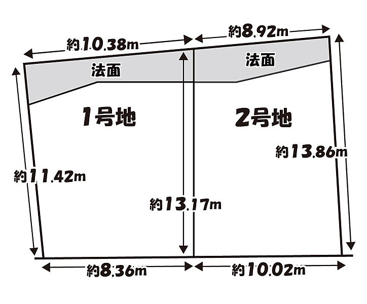 | 建物面積 | - | 土地面積 | 102.97m2(1号地)~105.11m2(2号地) |
