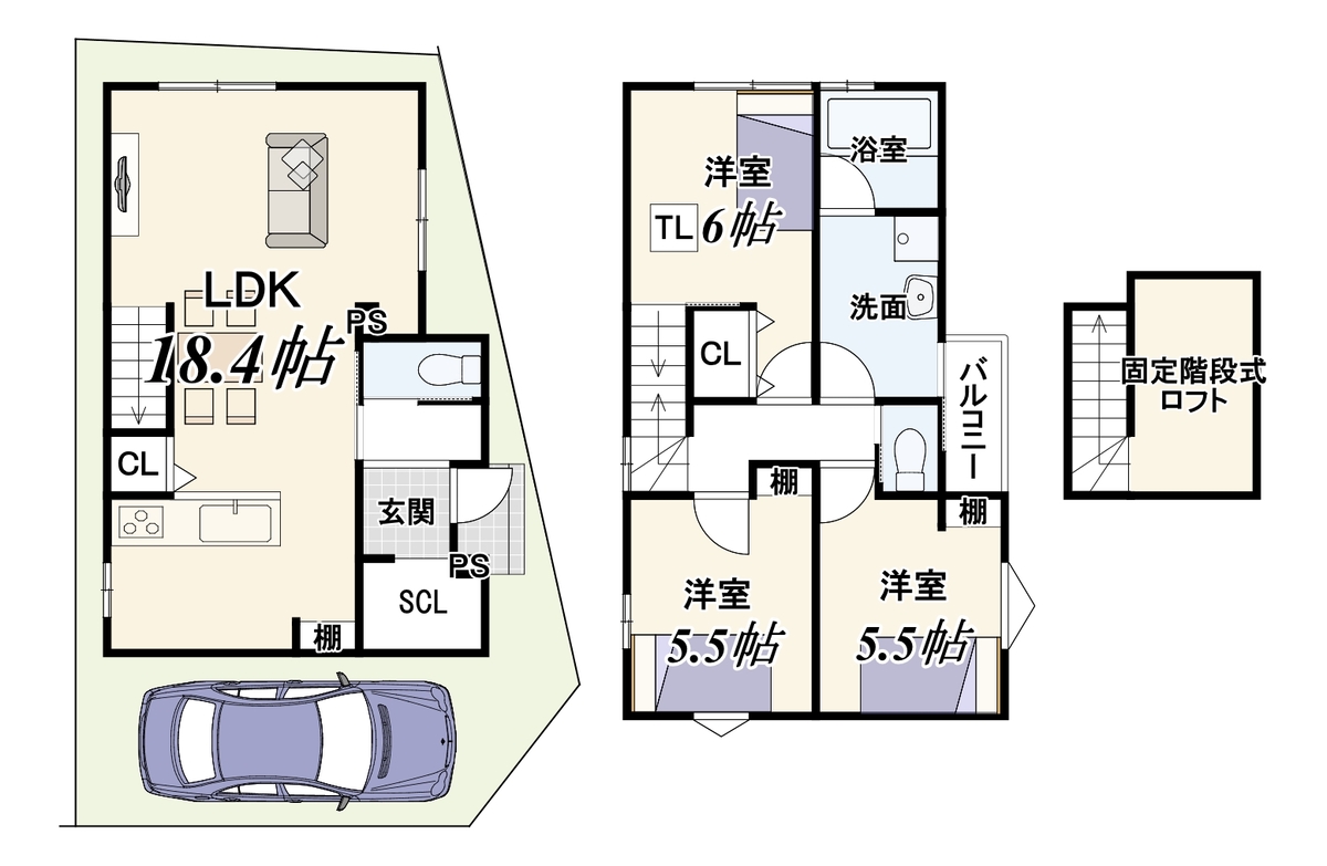 - ※完成予想図やCG合成画像は、門塀・植栽・庭・外観等、実際とは多少異なる場合があります。