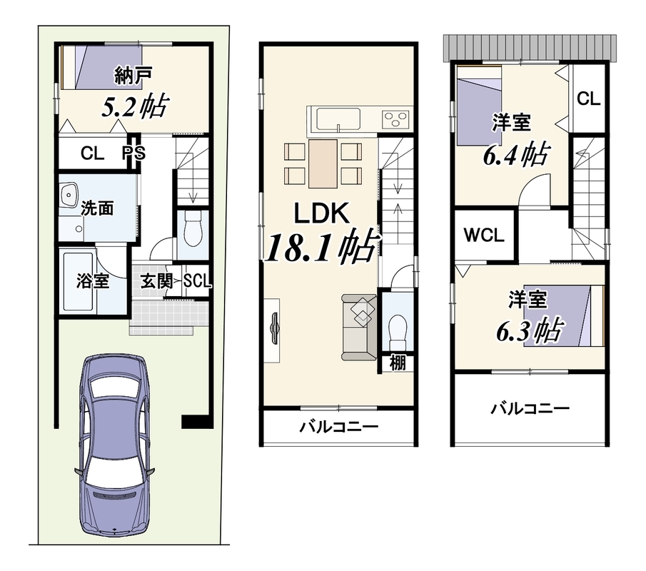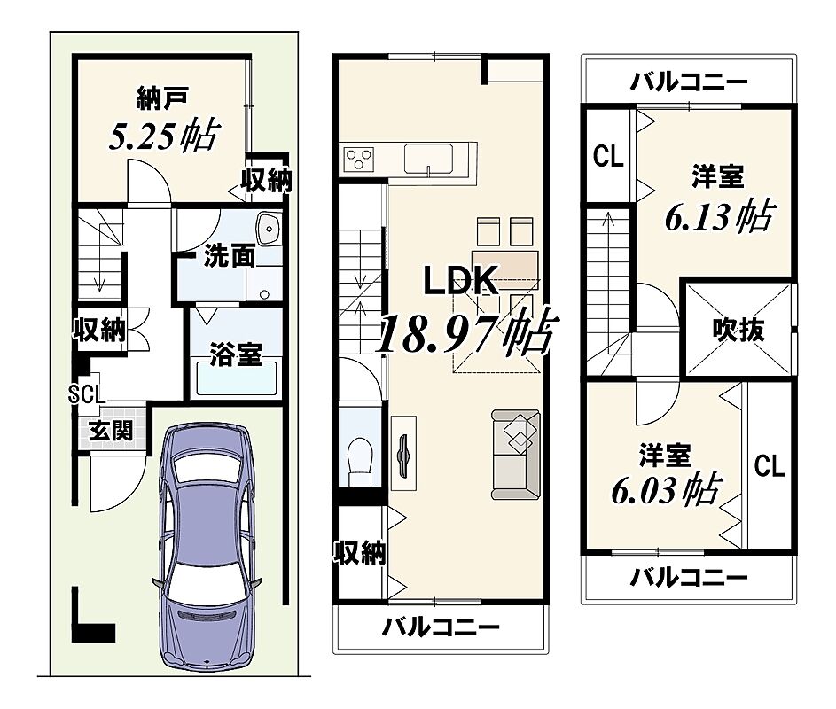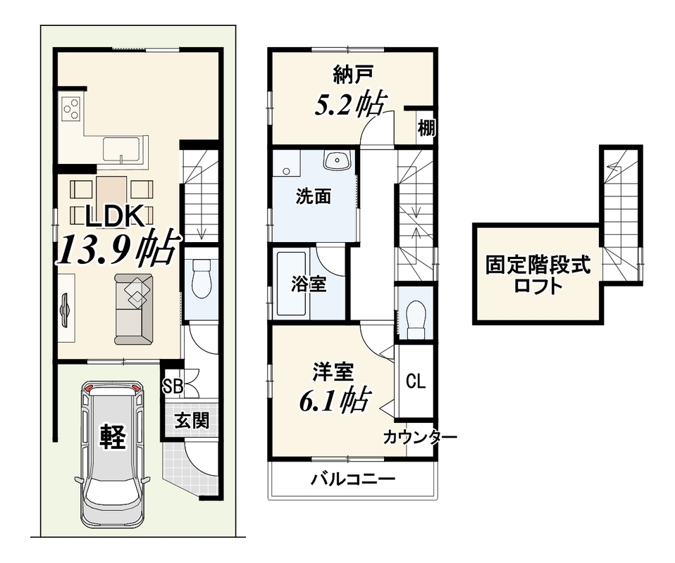 - ※完成予想図やCG合成画像は、門塀・植栽・庭・外観等、実際とは多少異なる場合があります。