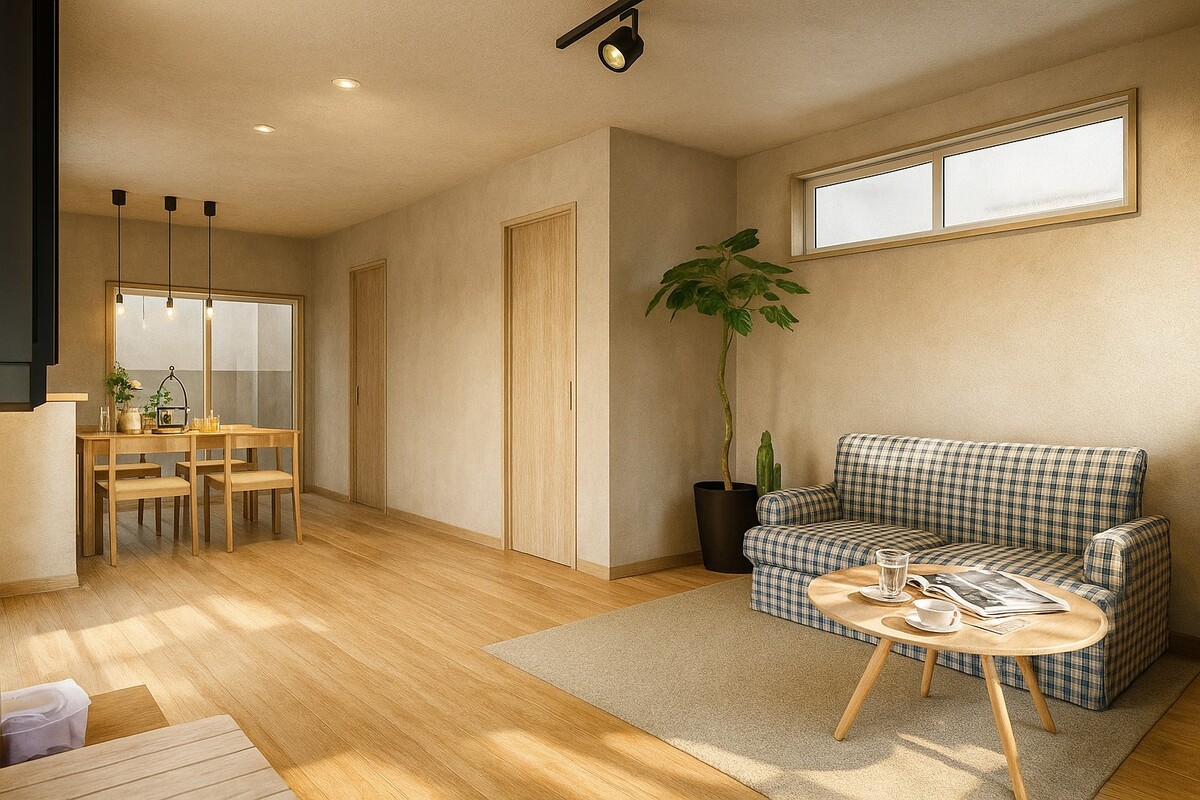 2階リビングは陽当たり、風通し共に良好でご家族みんなで過ごす空...