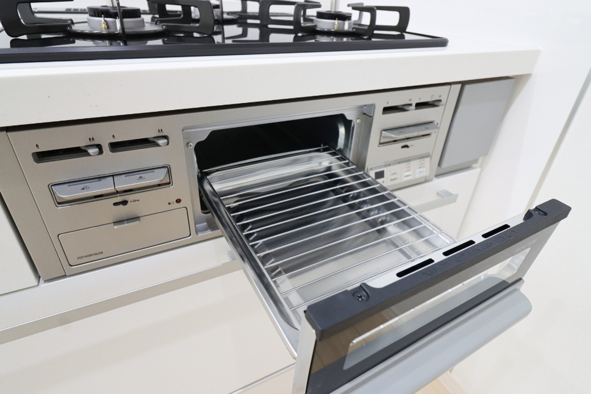 ご飯の準備や後片付けの時短になる食器洗い乾燥機やホーロートップガスコンロ、グリルが備え付け!充実設備で家事の時間が短縮され、家族のくつろぎタイムもゆっくりもてますね♪