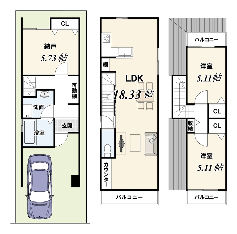 - ※完成予想図やCG合成画像は、門塀・植栽・庭・外観等、実際とは多少異なる場合があります。
