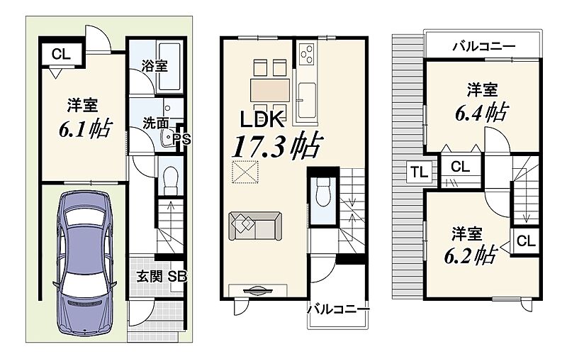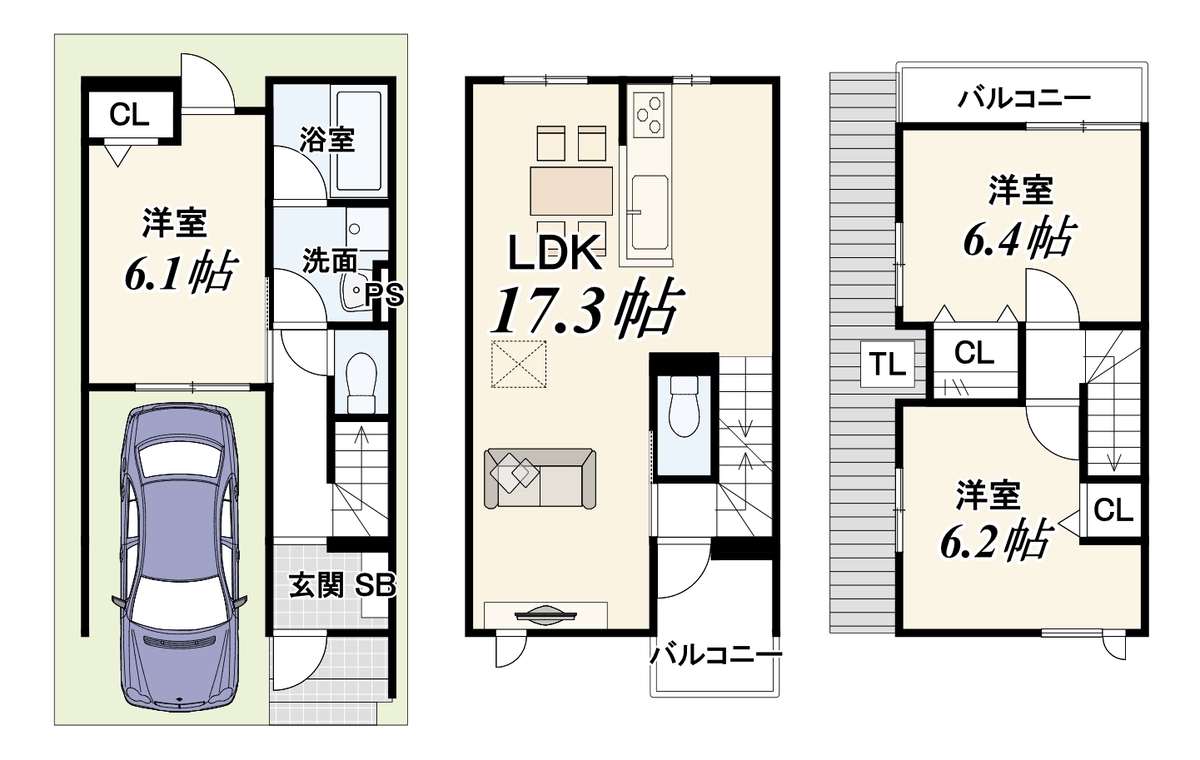 - ※完成予想図やCG合成画像は、門塀・植栽・庭・外観等、実際とは多少異なる場合があります。