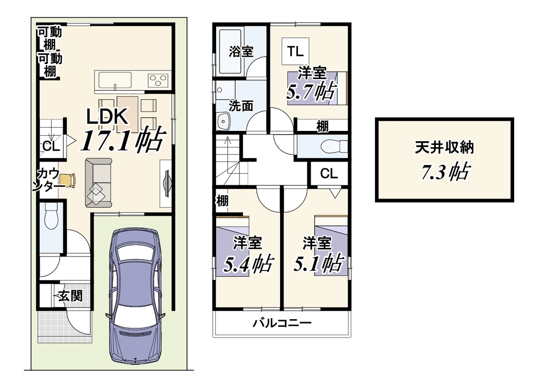 - ※完成予想図やCG合成画像は、門塀・植栽・庭・外観等、実際とは多少異なる場合があります。