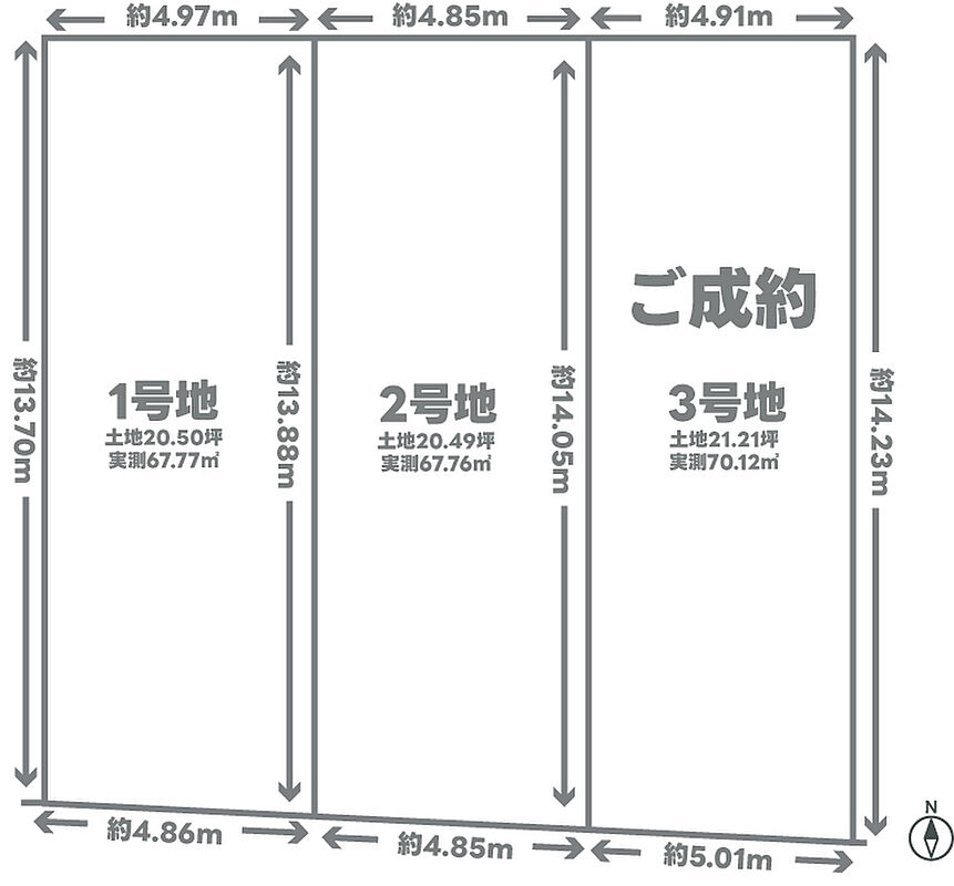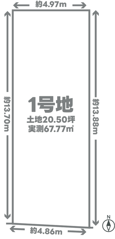 | 建物面積 | - | 土地面積 | 実測67.77m2(20.50坪)・67.76m2(20.49坪) |