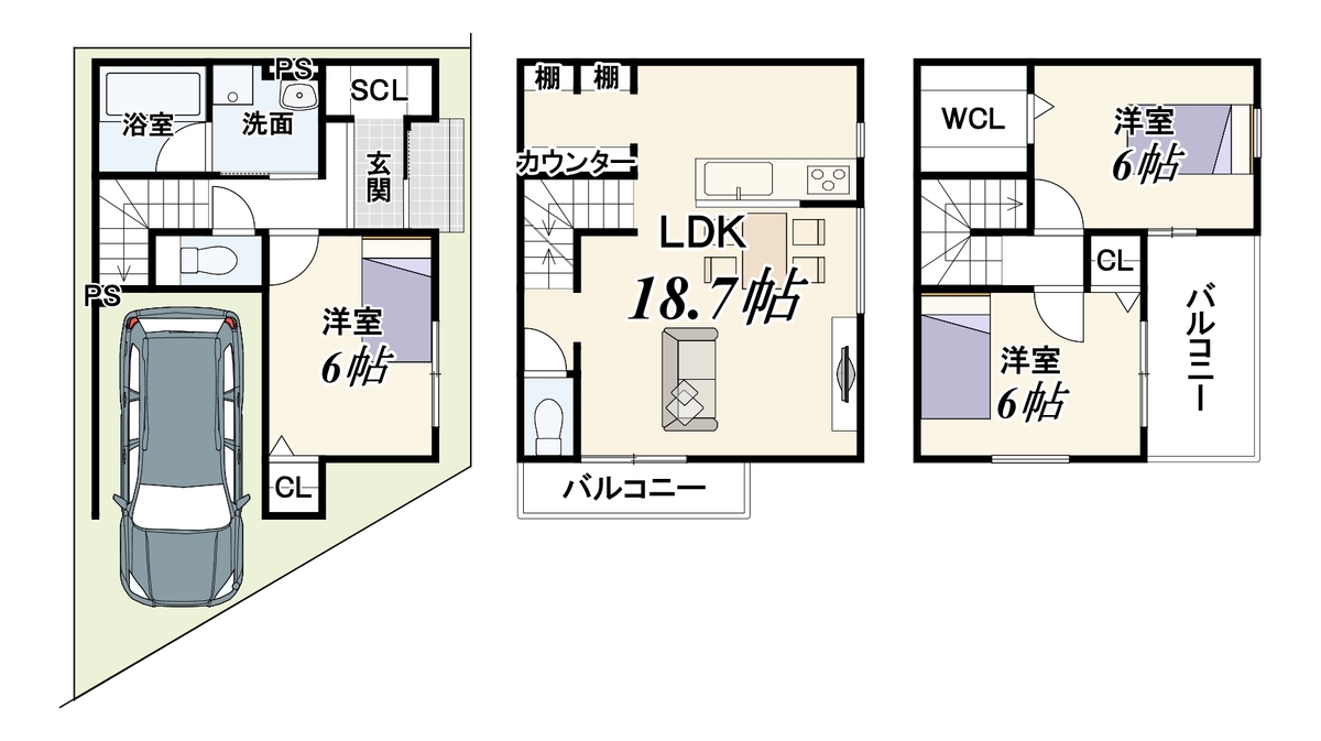 - ※完成予想図やCG合成画像は、門塀・植栽・庭・外観等、実際とは多少異なる場合があります。