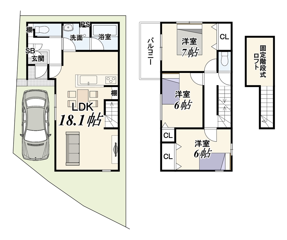 - ※完成予想図やCG合成画像は、門塀・植栽・庭・外観等、実際とは多少異なる場合があります。