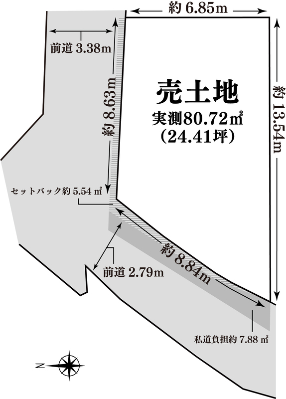 | 建物面積 | - | 土地面積 | 実測80.72m2(24.41坪) |