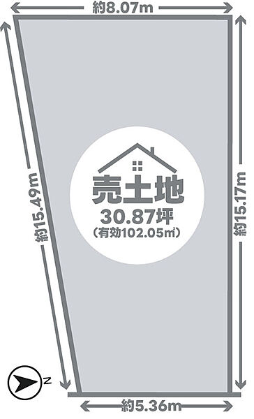 | 建物面積 | - | 土地面積 | 実測102.09m2(30.88坪) |