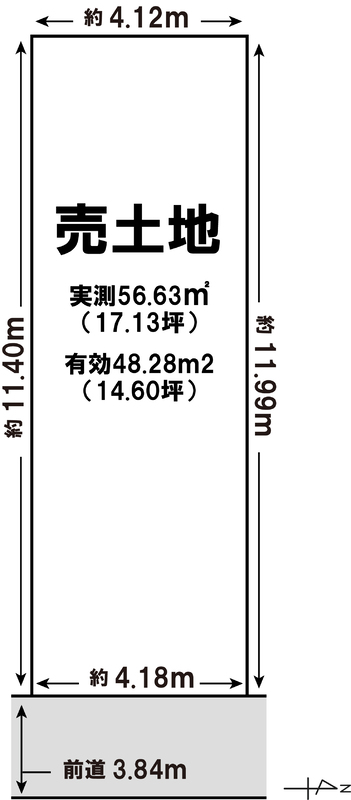 | 建物面積 | - | 土地面積 | 実測56.63m2(17.13坪) |