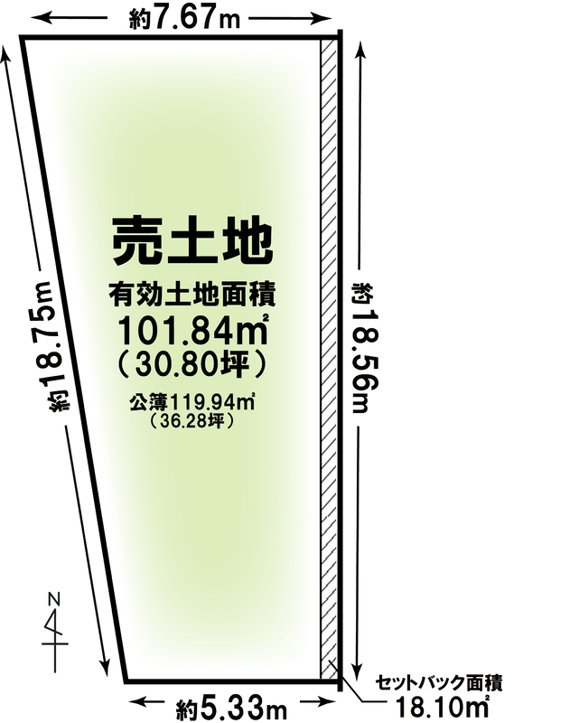 | 建物面積 | - | 土地面積 | 公簿119.94m2(36.28坪) |