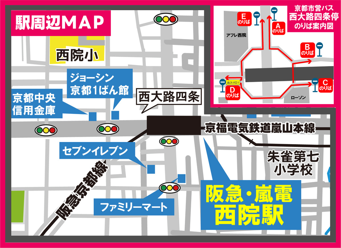 ■京福山ノ内駅…歩5分×阪急西院駅…歩13分×地下鉄西大路御池駅…歩15分
