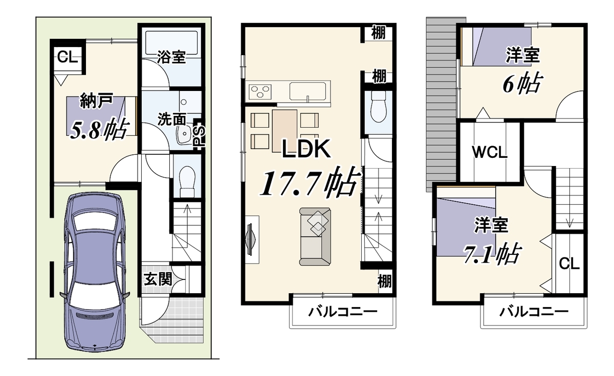 魅力1 ●便利な3wayアクセス!●充実の標準設備!●前道広々5.95m!