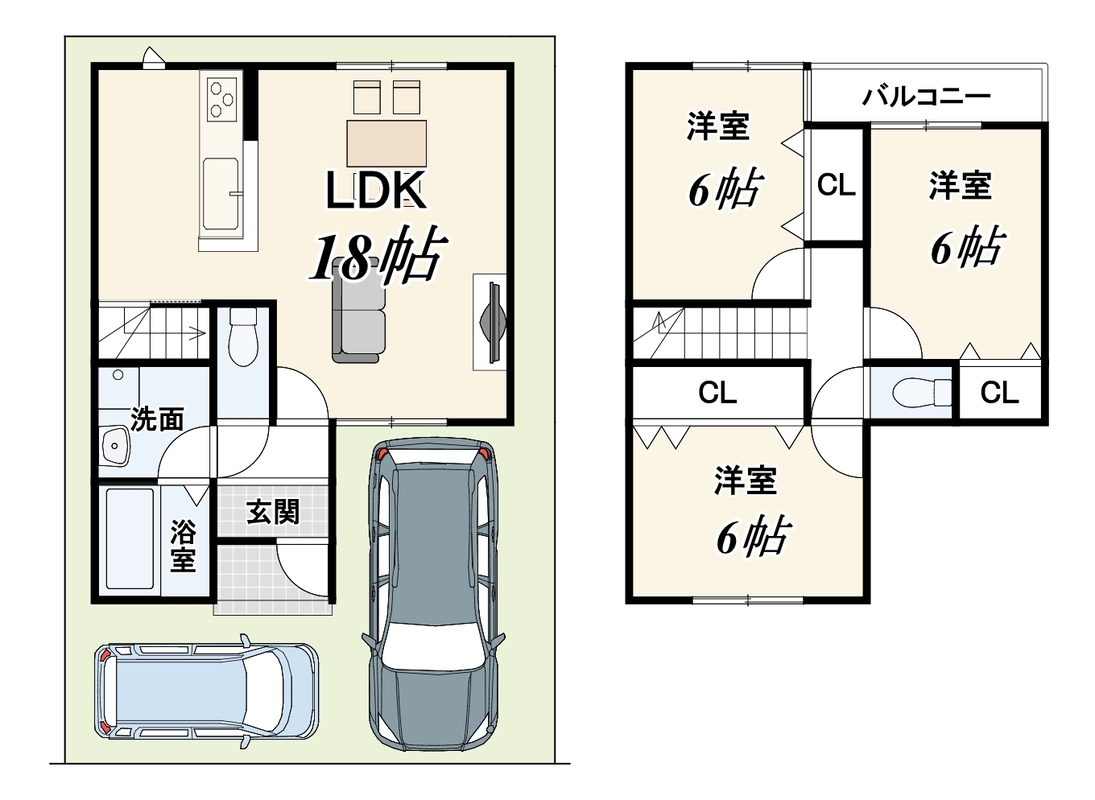 - ※完成予想図やCG合成画像は、門塀・植栽・庭・外観等、実際とは多少異なる場合があります。