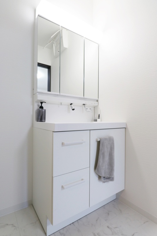 ミラーキャビネットになっているため、ドライヤーやスキンケアセッ...