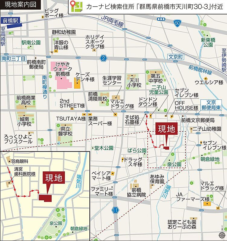 JR両毛線「前橋」駅 徒歩30分 JR両毛線「前橋大島」駅 徒歩31分 上毛電気鉄道「城東」駅 徒歩33分 |