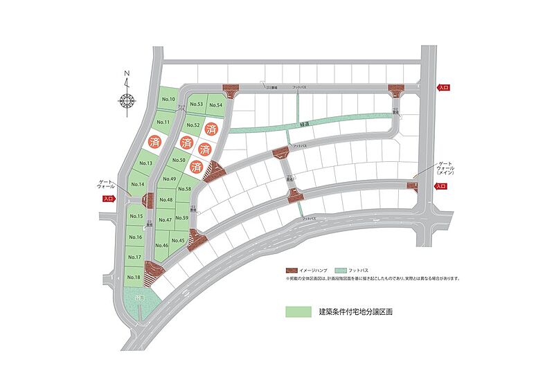 | 建築条件 | 建築条件付 建築条件付き土地とは一定期間内に、その土地に建築する建物の請負契約が締結されることを条件に販売される土地のことです。 土地売買契約締結後、建築請負会社と購入した土地に建築する建物について協議することになります。広告に参考プランが掲載されている場合でも、プランは一例であり、実際の建築プランは建築請負会社と土地購入者で協議・検討することが可能です。 期間内に建築プランが決まらず建築請負契約が成立しなければ土地売買契約は白紙となり、支払済みの金銭はすべて返還されます。 建築請負会社が指定されている場合と指定されていない場合があります。 また、建築条件付き土地の価格には、建物価格は含まれません。 |