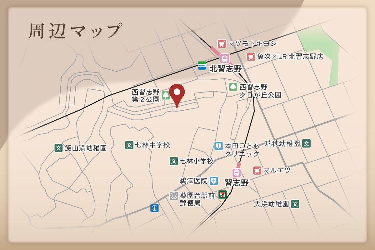 - 東葉高速鉄道「北習志野」駅 徒歩7分京成松戸線「北習志野」駅 徒歩7分京成松戸線「習志野」駅 徒歩10分