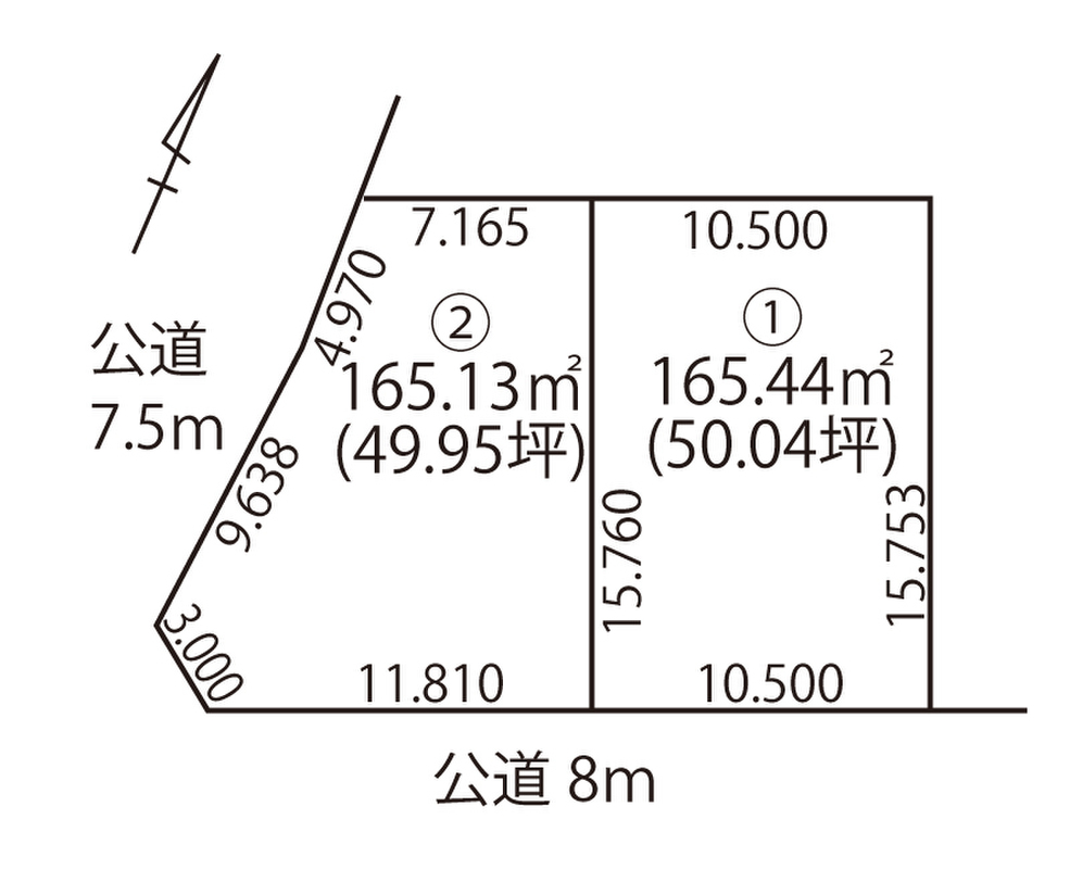 | 建物面積 | - | 土地面積 | 165.13m2・165.44m2 |