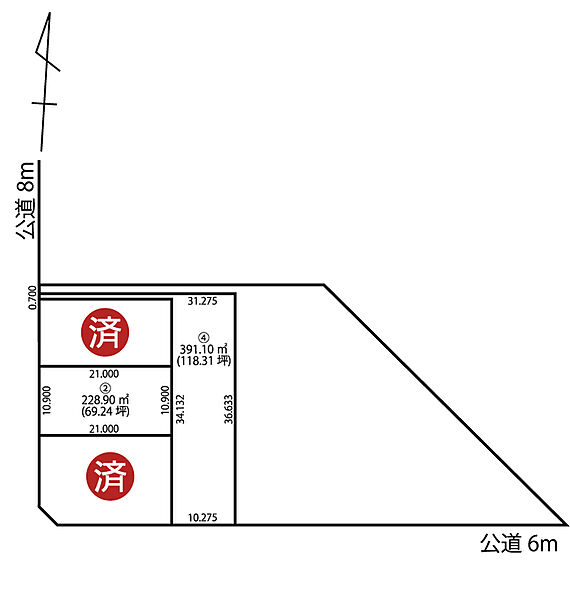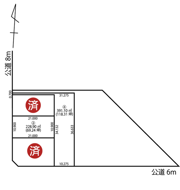 | 駐車場 | - | 道路の幅員 | 南側6m公道、西側8m公道 |