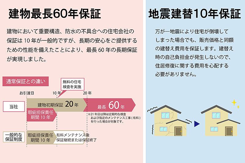 | 建築条件 | 建築条件無 建築条件付き土地とは一定期間内に、その土地に建築する建物の請負契約が締結されることを条件に販売される土地のことです。 土地売買契約締結後、建築請負会社と購入した土地に建築する建物について協議することになります。広告に参考プランが掲載されている場合でも、プランは一例であり、実際の建築プランは建築請負会社と土地購入者で協議・検討することが可能です。 期間内に建築プランが決まらず建築請負契約が成立しなければ土地売買契約は白紙となり、支払済みの金銭はすべて返還されます。 建築請負会社が指定されている場合と指定されていない場合があります。 また、建築条件付き土地の価格には、建物価格は含まれません。 |