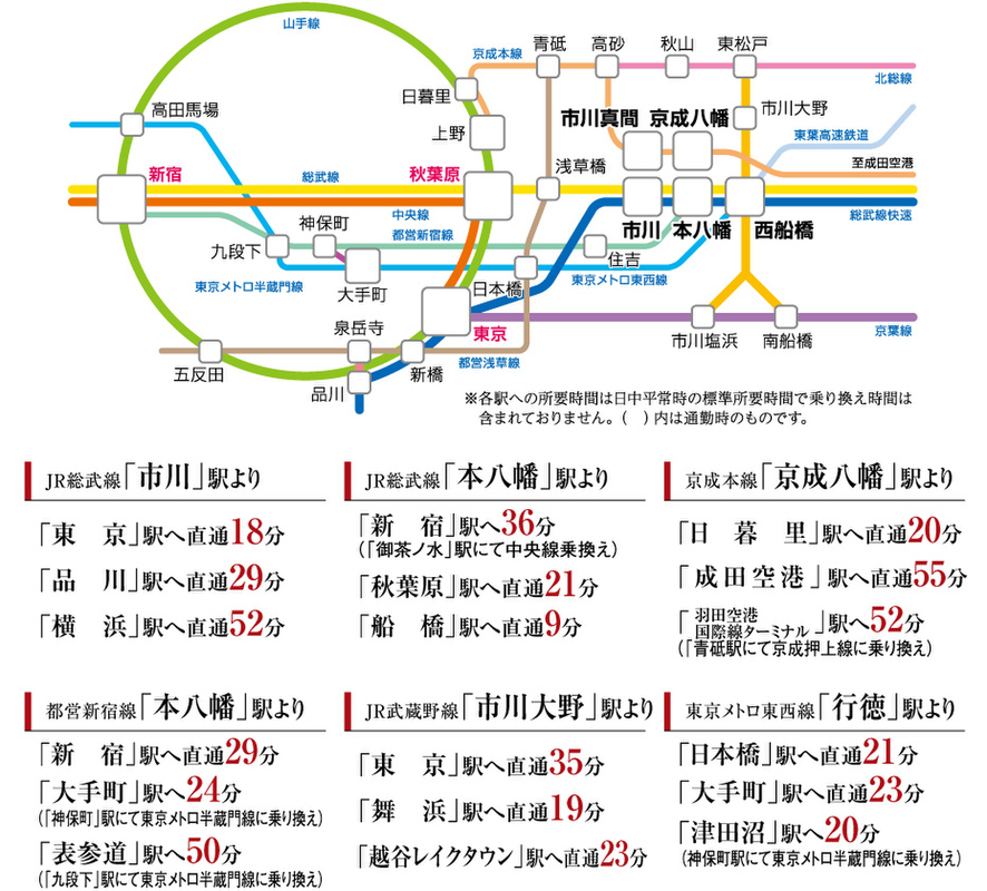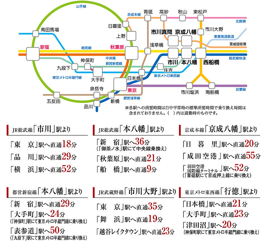 JR総武線「市川」駅 徒歩18分 京成本線「市川真間」駅 徒歩13分 |