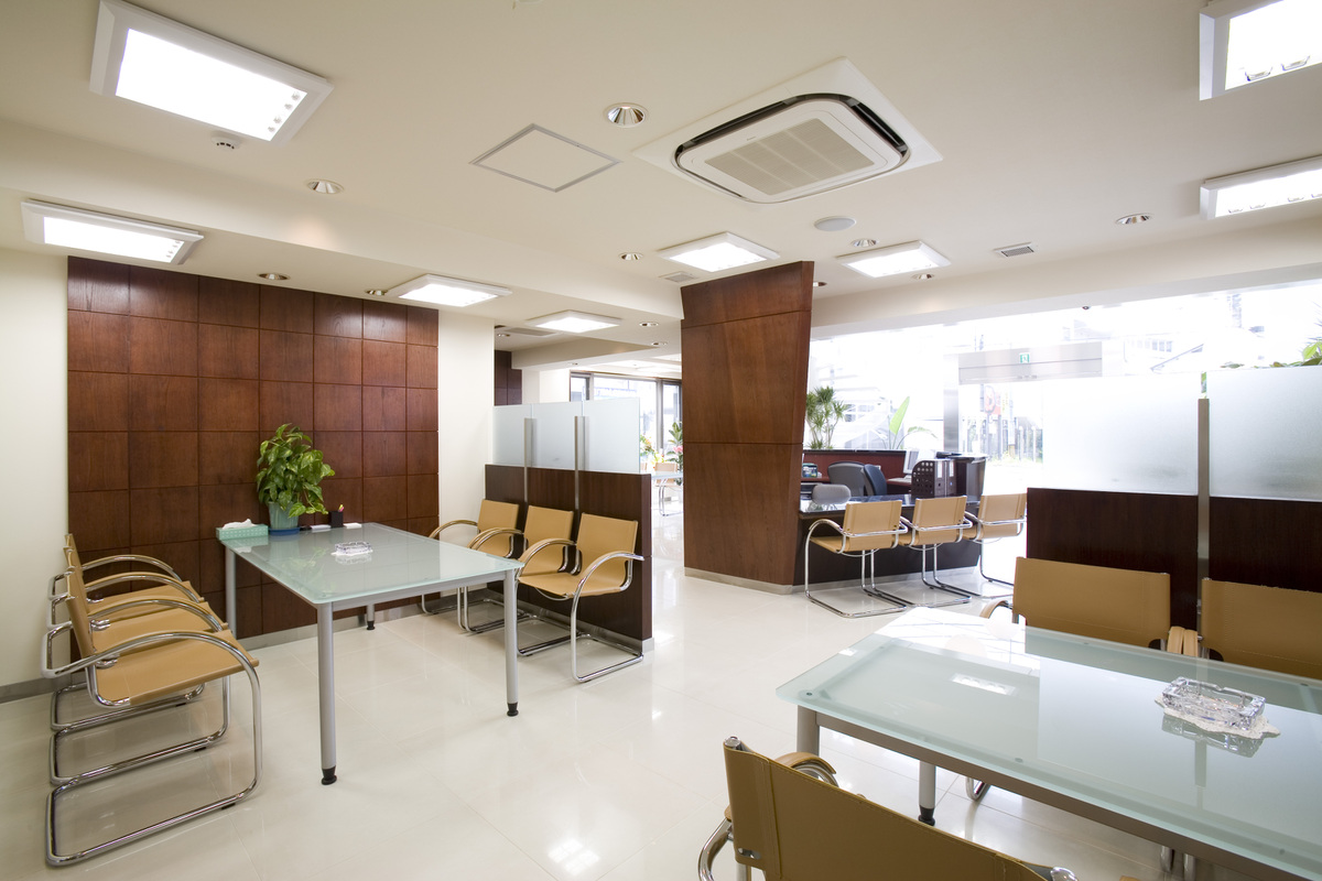 お客様の住まい選びがより快適にできるようにきれいな店舗づくりにも力を入れています。従来の不動産会社のイメージを一新するお洒落な「住まいのショップ」としてお客様の住まい選びをサポートしています。店内にはキッズルームや個室も完備。広い打合せコーナーでゆったりとご相談いただけます。また駐車場も10台分ご用意。車でもご来店いただけます。