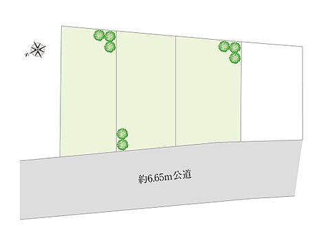 | 駐車場 | 1台(ビルトイン車庫可能可能) | 道路の幅員 | 西約6.6m公道 |