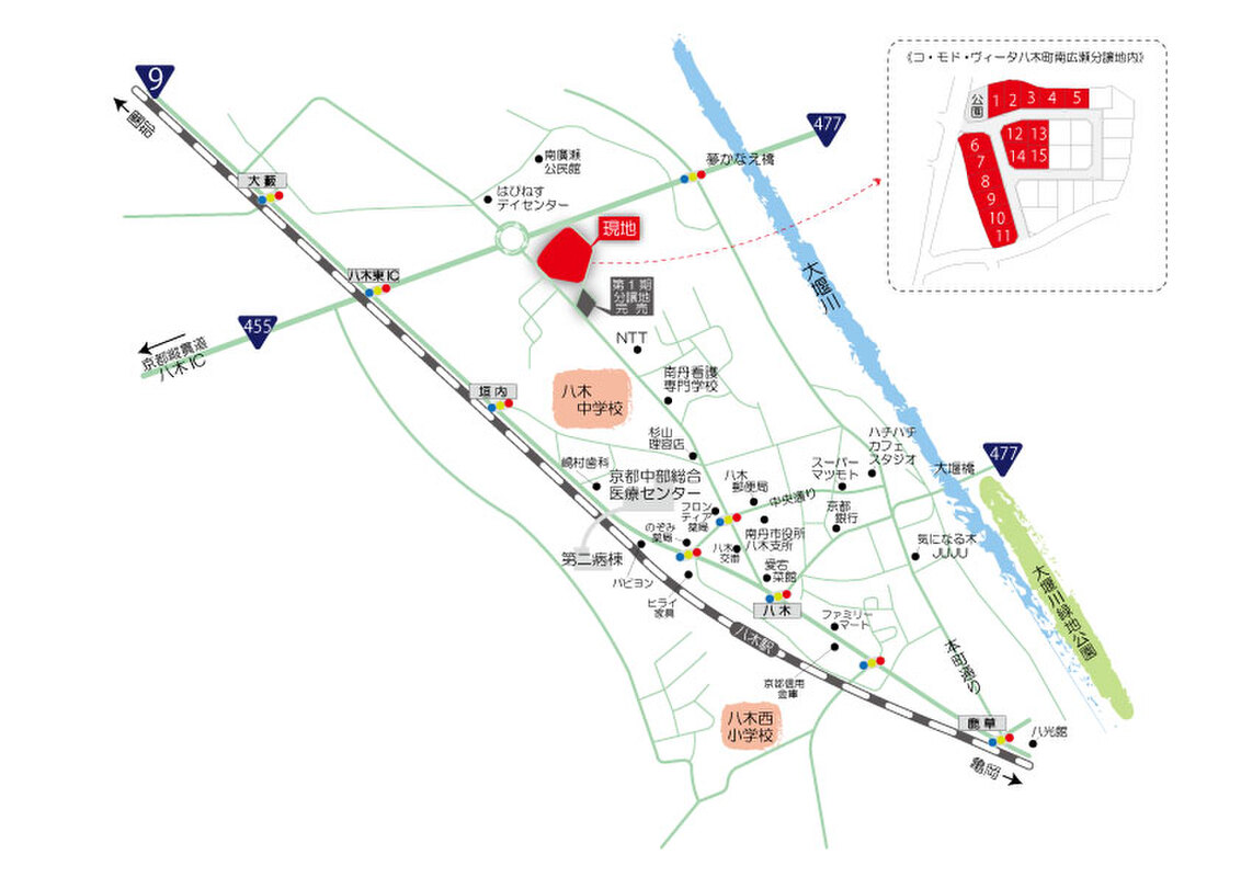 コ・モド・ヴィータ八木町南広瀬分譲地 JR八木駅まで徒歩約13分。暮らしやすさ、子育てのしやすさ、四季折々の自然の癒しを享受できるゆったりとした住環境。