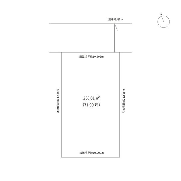 | 駐車場 | 1台 ~ 2台 | 道路の幅員 | 北側道路 幅6.0m・接面10.909m |