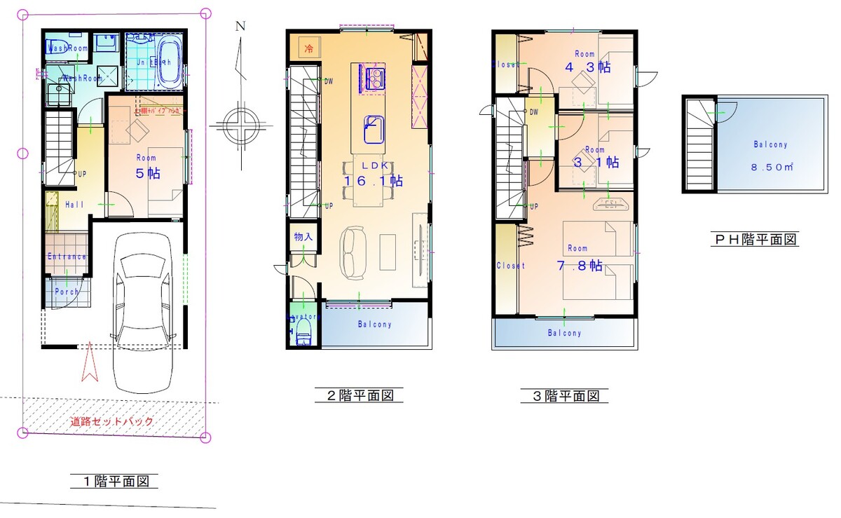- ※完成予想図やCG合成画像は、門塀・植栽・庭・外観等、実際とは多少異なる場合があります。