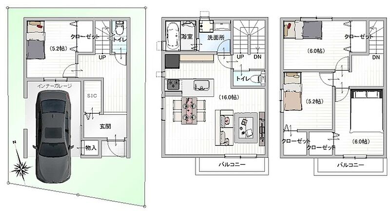 - ※完成予想図やCG合成画像は、門塀・植栽・庭・外観等、実際とは多少異なる場合があります。