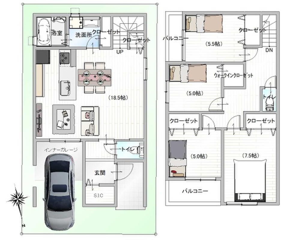 - ※完成予想図やCG合成画像は、門塀・植栽・庭・外観等、実際とは多少異なる場合があります。