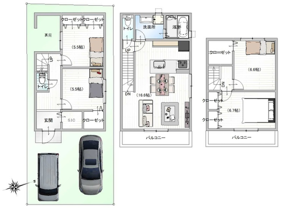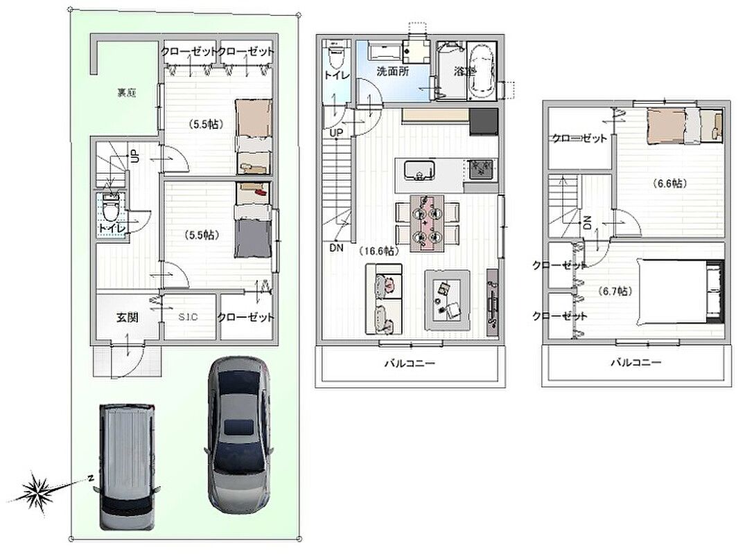 - ※完成予想図やCG合成画像は、門塀・植栽・庭・外観等、実際とは多少異なる場合があります。