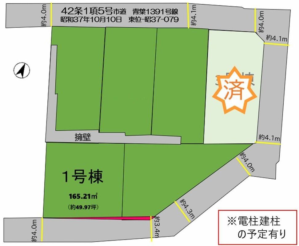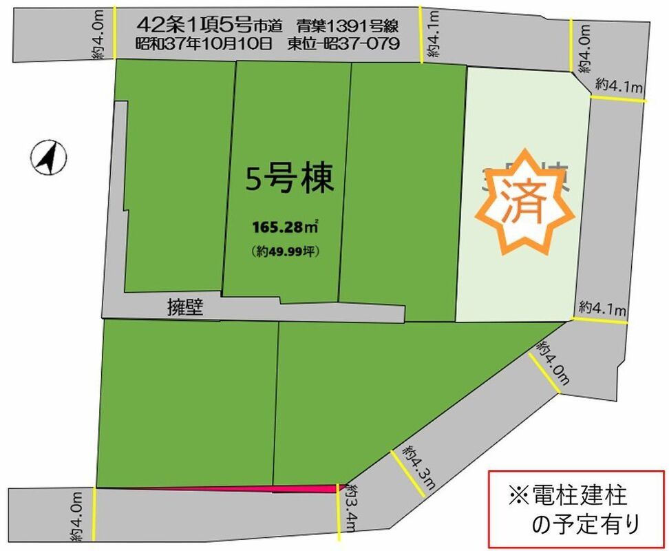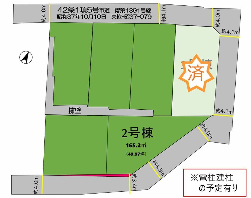 | 主たる設備の概要 | 公営水道/本下水/都市ガス/側溝 | 開発許可番号 | |