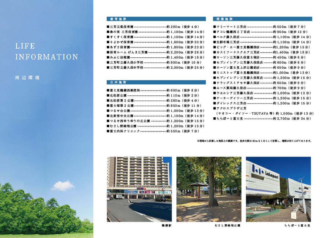 - 東武東上線「鶴瀬」駅 徒歩17分東武東上線「みずほ台」駅 徒歩35分東武東上線「ふじみ野」駅 徒歩26分