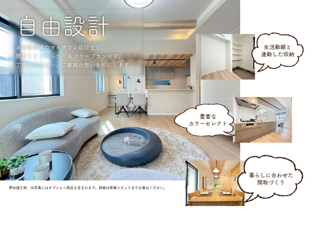 お客様専属の設計士と間取りを1からプランニングする「フリープラン住宅」で、ご家族のライフスタイルに合わせた理想の住まいを実現!機能性の高い設備仕様や安心のアフターサービスもございます。